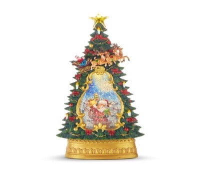 SANTA EN CHIMENEA CON ARBOL DE AGUA ILUMINADO 35 CM