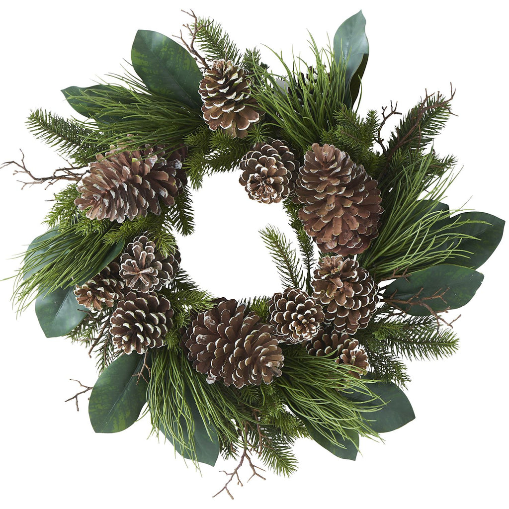 CORONA CON PIÑAS Y MAGNOLIA 61 CM DIAMETRO