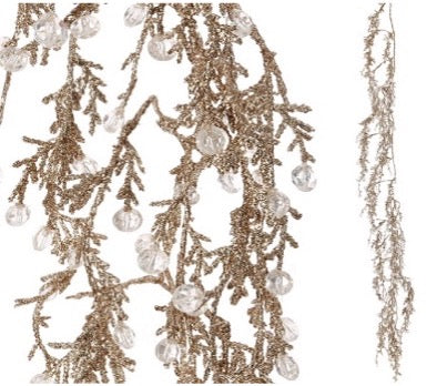 6' GUIRNALDA DE HIELO BRILLANTE DORADA CON PERLAS 183 CM